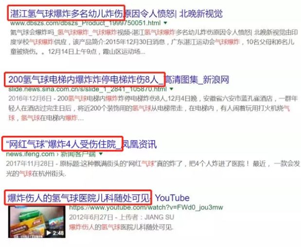 氢气球爆炸伤人这种新闻已经不是一两次出现了,小编上网随手搜索了一下「氢气球爆炸伤人」,网页结果显示有 454,000 条。