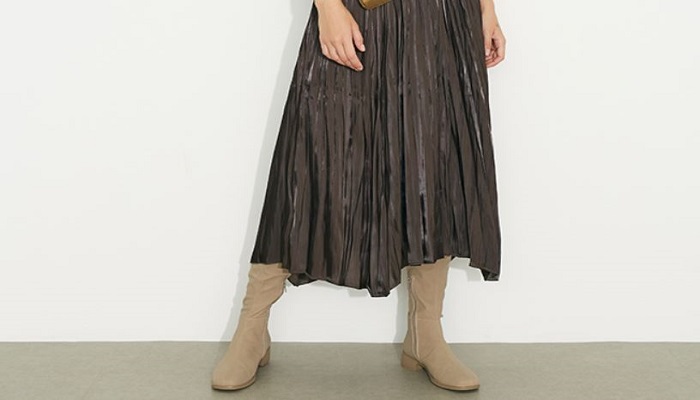 2.长裙适合搭配靴子。选择靴子时可以选择长度在脚踝以上膝盖以下的靴子。如果穿的是有褶皱设计的长裙,最好选择材质偏软、有褶皱的靴子。